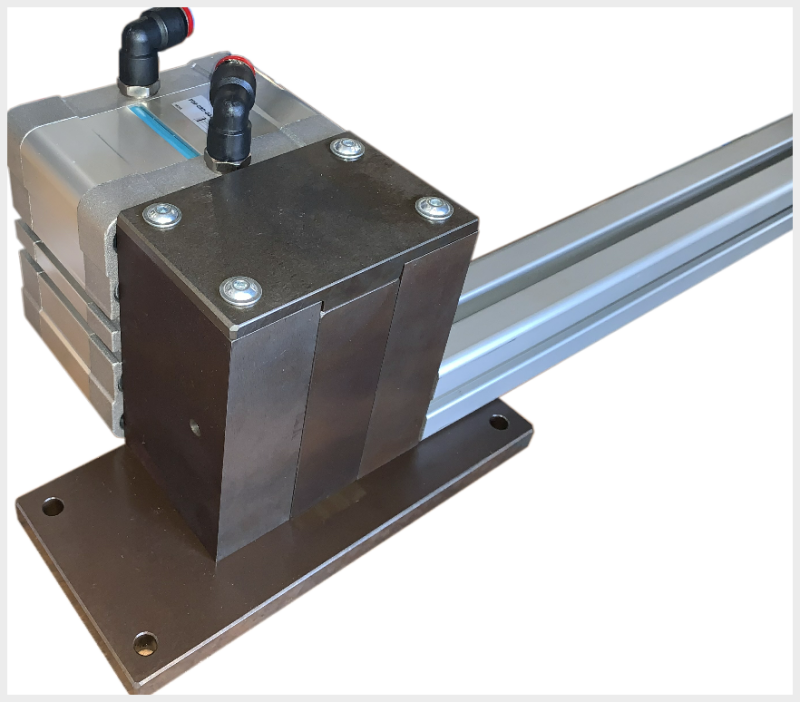Pneumatische Schneidevorrichtung für Drähte bis max. 5mm ( Materialabhängig ) Anwendung: Schneidmesser aus gehärtetem Werkzeugstahl, leicht austauschbar.